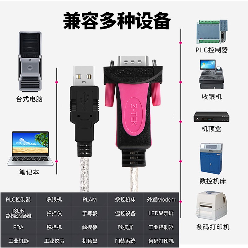 Z-TEK Lite USB to RS232 serial port cable USB to DB9 pin male head transfer wiring attendance machine ZE533A