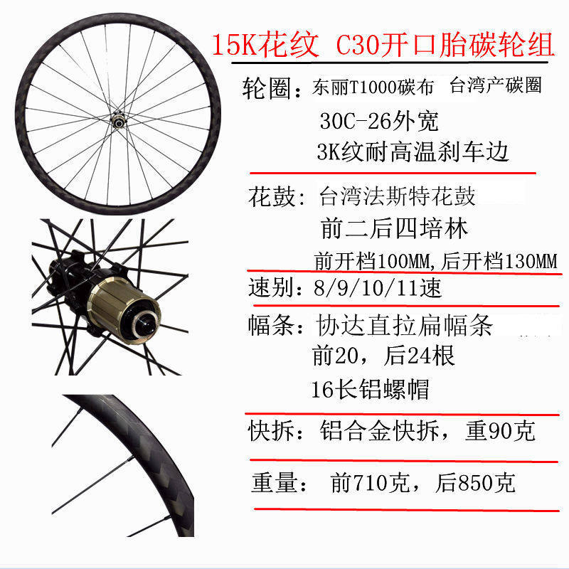 Taiwan 15K color carbon fiber road wheel group 700C wheel group 30MM high open port tire