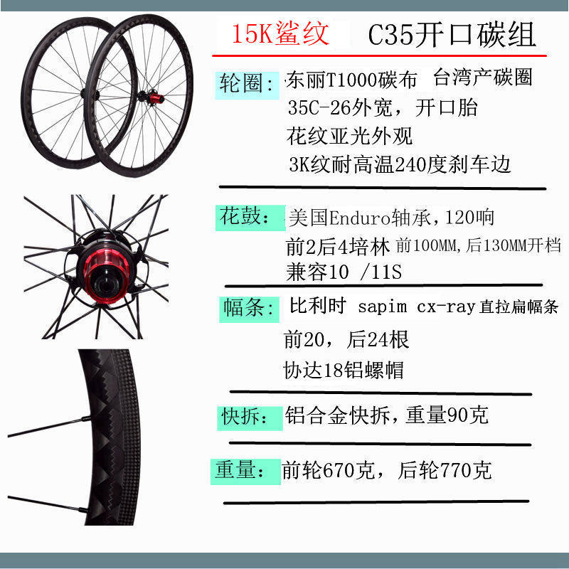 Taiwan production 15K shark grain carbon fiber wheel set 35 high road bike opening tire C brake version 700C