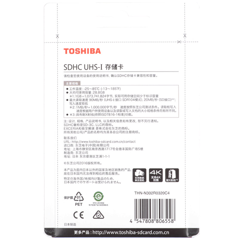 TOSHIBA 32GB 90M S SDHC Class10 UHS-IU3 Flash Memory Card