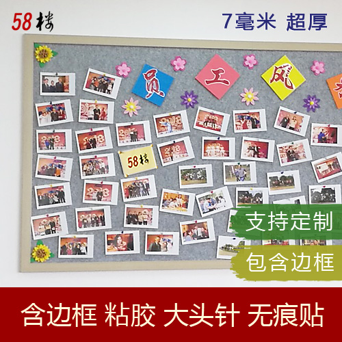 Custom oversized 8mm felt imitation solid wood border promotional column Photo cultural display wall Bulletin board is better than cork
