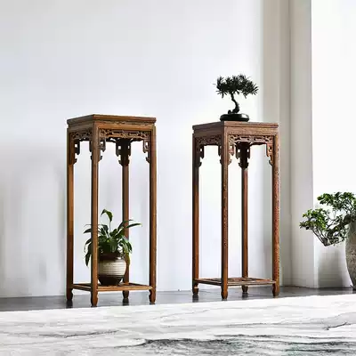 Redwood Chinese living room chicken wing Wood high flower shelf indoor multi-layer simple flower few double layer ancient solid wood flower pot stand