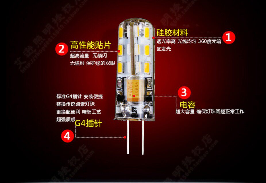LED lamp Pearl g4 Blister 12V Water Crystal Light Energy Saving Small Bulb Light Source Halogen Lamp 3W5W Pin 220V Inserts