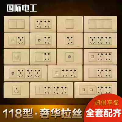 International electrician 118 type wall switch socket panel Champagne gold brushed box 15-hole nine-hole socket panel