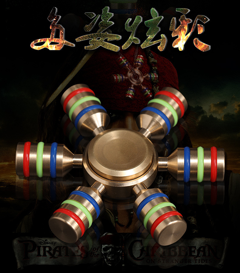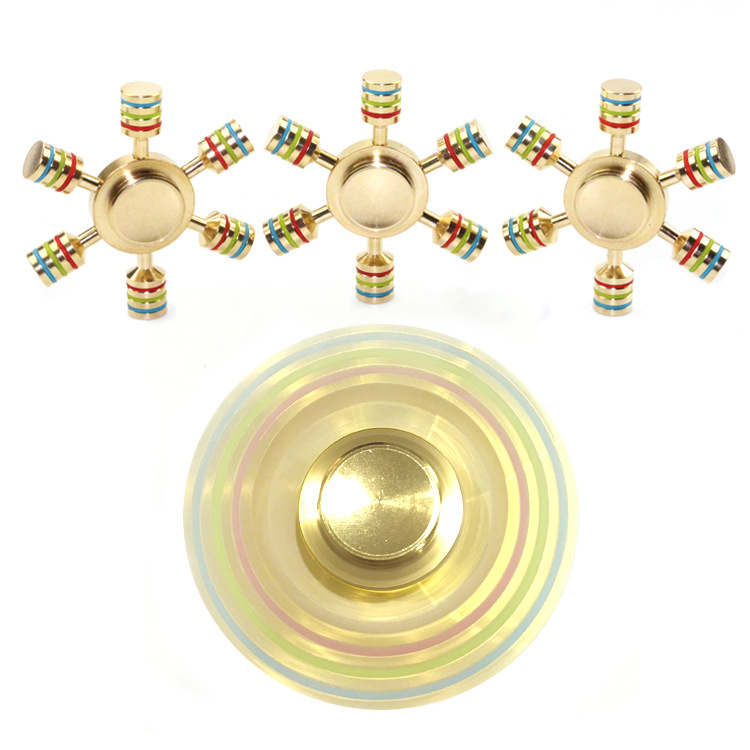 New fidget spinner three-headed six-arm metal finger gyro decompression toy colorful hexagonal DIY pure copper