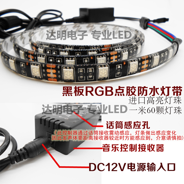 LED black floor color lamp with 12V music rhythm voice control car patch 5050rgb drop adhesive soft lamp