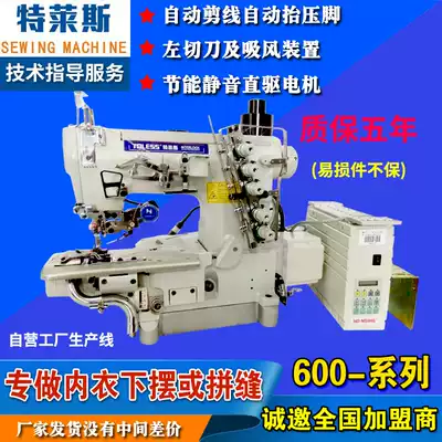 600 small square head automatic thread cutting interlock sewing machine left cutter underwear hem special three-needle five-wire industrial sewing machine