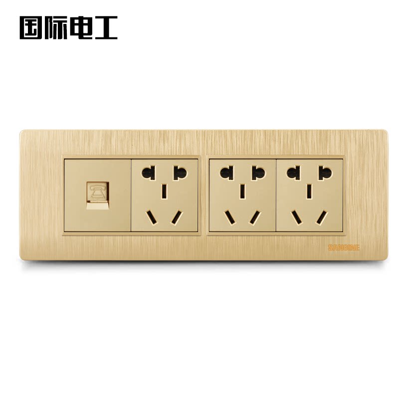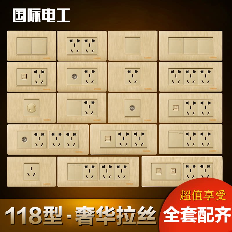 International Electrician Home 118 Type Switch Socket Champagne Brushed 9 Hole Power Supply Wall Panel Computer Fifteen Holes