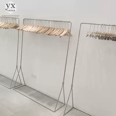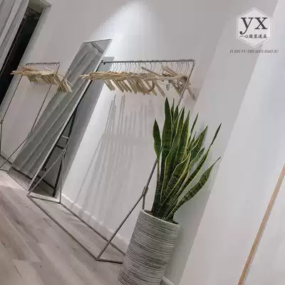 Clothing store display stand Floor-standing hanging clothes rack Stainless steel brushed silver display hanger Women's clothing rack