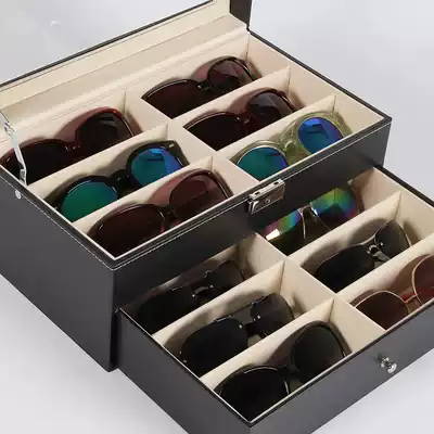 Glasses case men and women leather black counter display Box Props sunglasses sunglasses jewelry storage box multi-layer stall