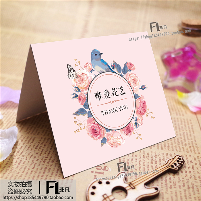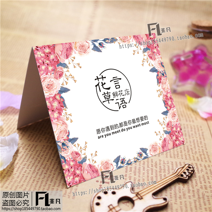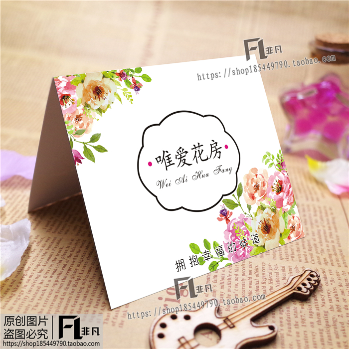 Flower card florist bouquet greeting card Small card custom blessing thanks QR code Birthday card custom logo