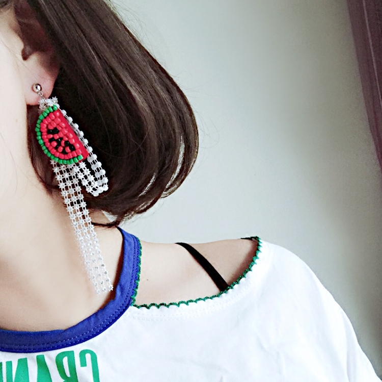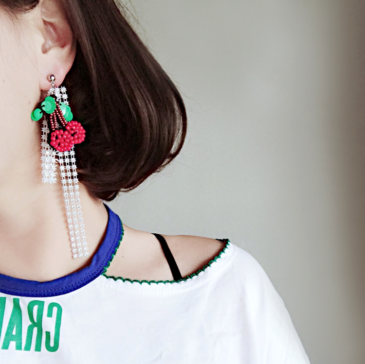 Sweet Summer Fashion Temperament Cute Cherry Water Drill Hollowed-out Lace Asymmetrical Earrings Girl Bright Pieces Ear Trinkets