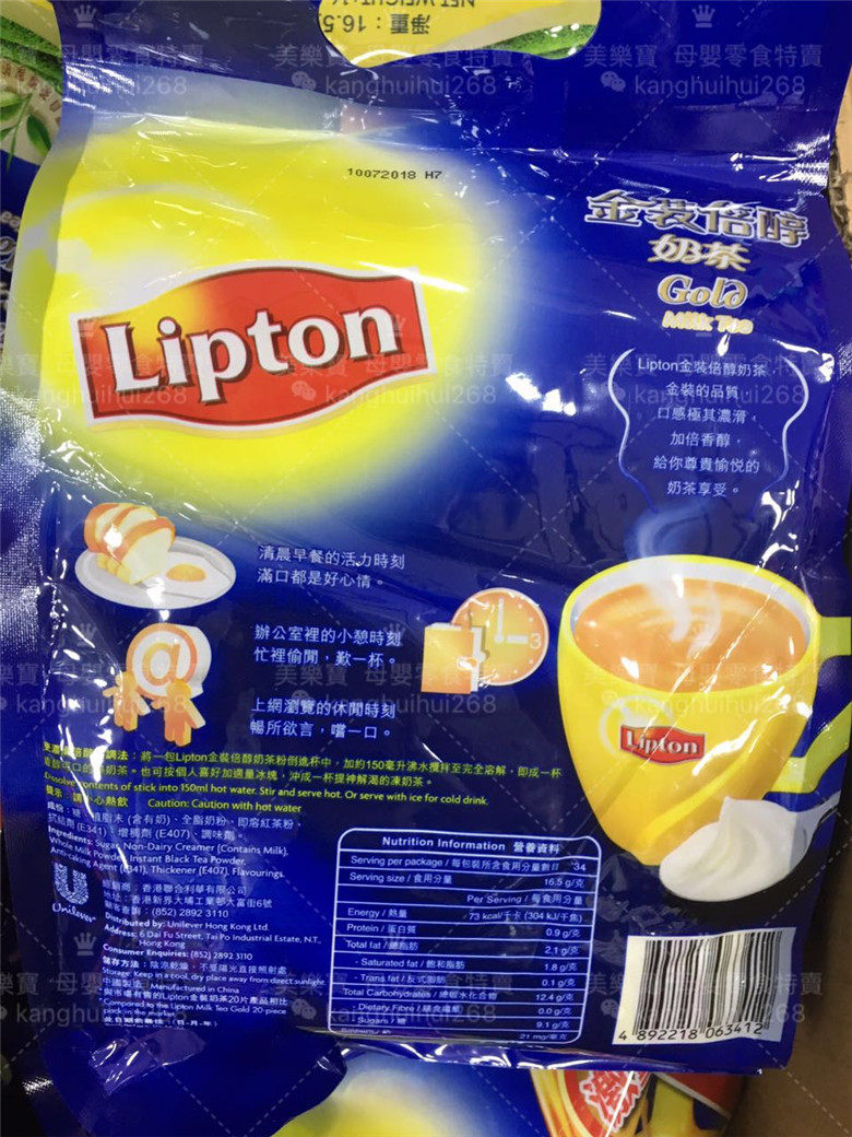 2 pieces plus mass-loaded Hong Kong Lipton Livington Gold Dress Twice Mellow Milk Tea Three-in-one 34 Pack 561g