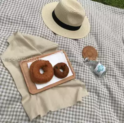 ins Korean pastoral khaki plaid cotton linen background cloth picnic cloth Korean style tablecloth photo background cloth