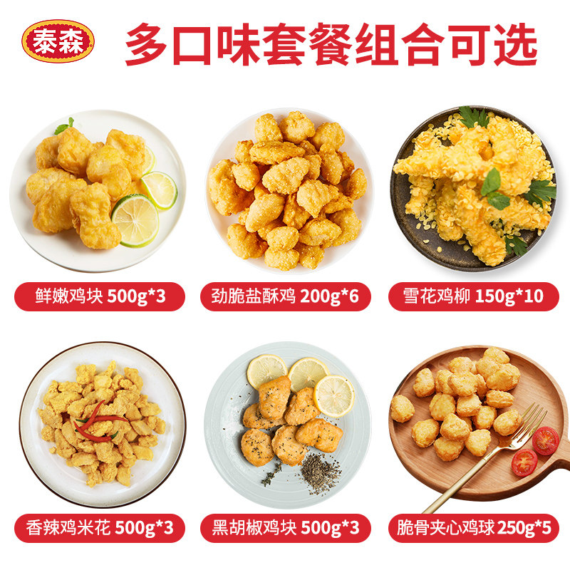Black pepper chicken nuggets 500g*3 packs Fresh chicken nuggets 500g*3 packs Snowflake chicken fillet 150g*10 packs Crispy and spicy chicken popcorn 500g*3 packs Crispy bone sandwich chicken balls 2