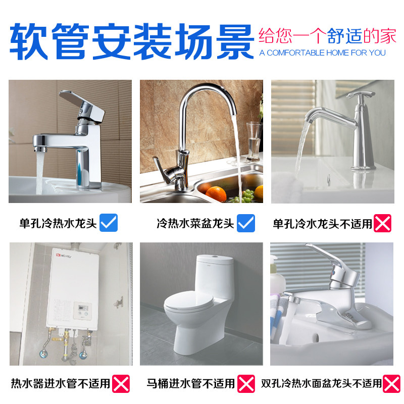 Diving boat tap water intake hose 304 stainless steel single-hole hot and cold sink washbasin tap water pipe