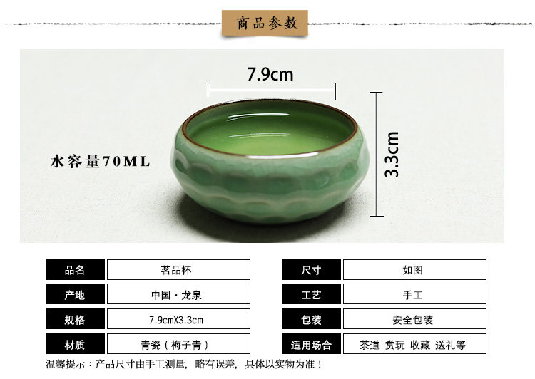 Dragon Springs Green porcelain Gaoyao Mei Ziqing Master's single cup Ice Cracked Pint Cup Kongfu Tea tea with ceramic Pu'er Tea Cup