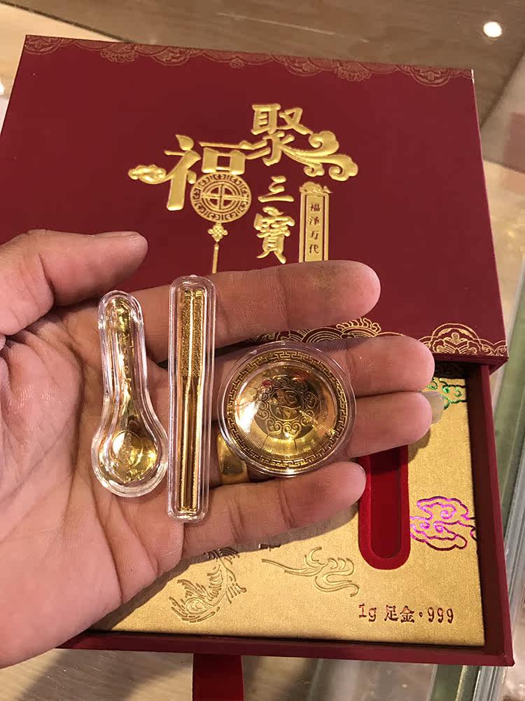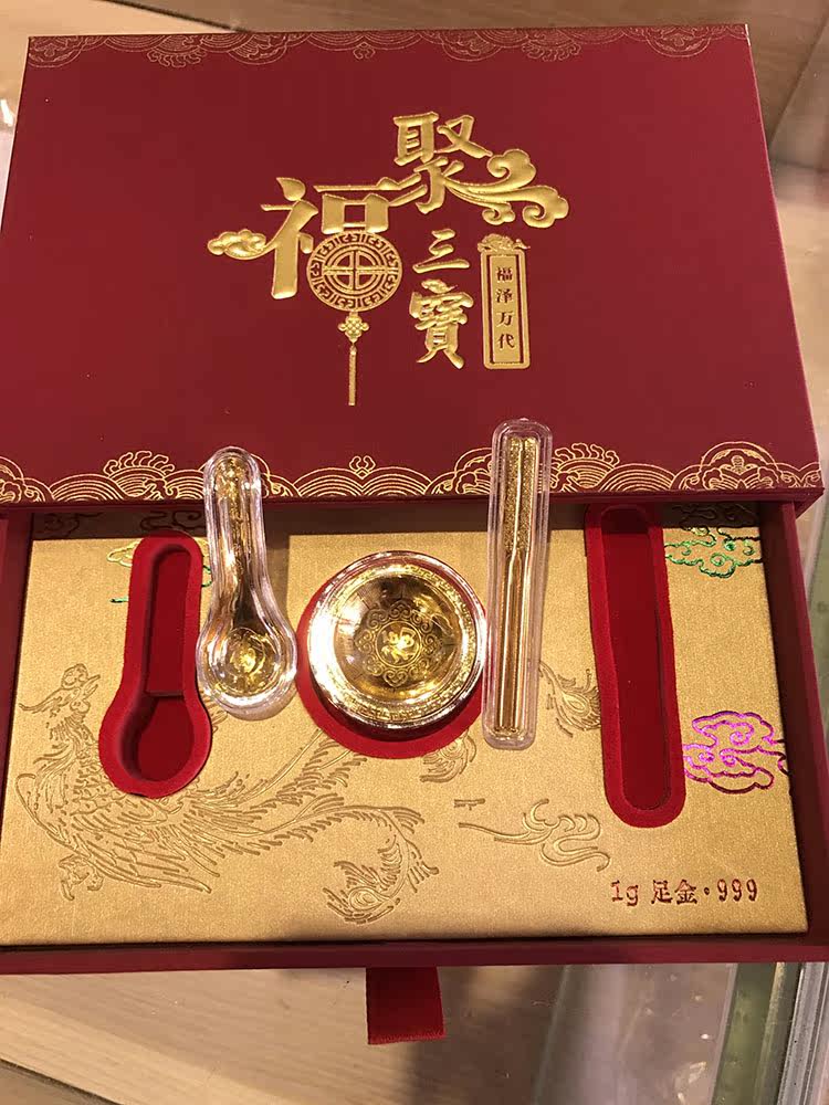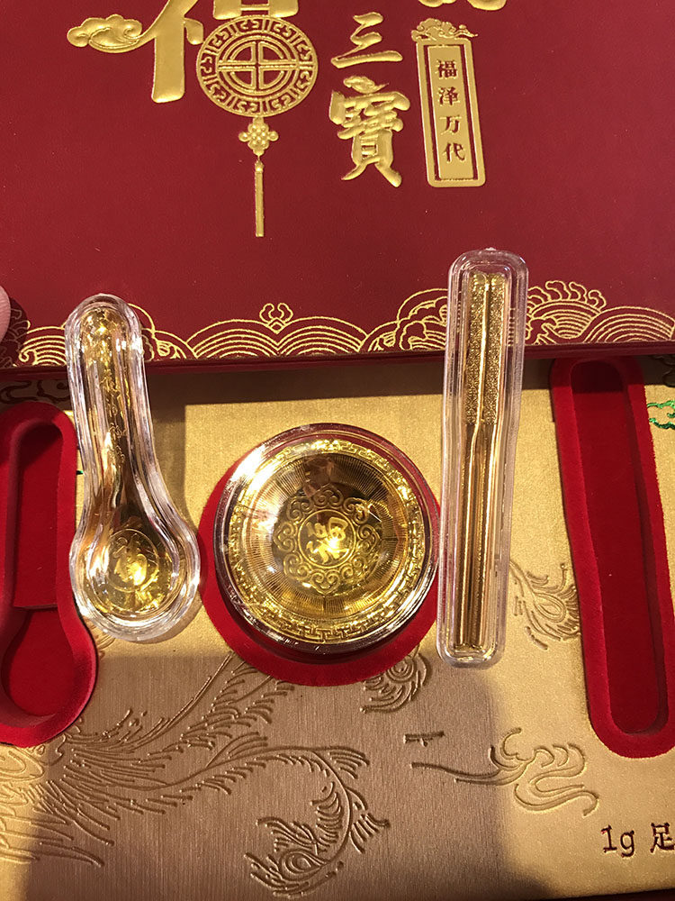 Gold foil gold bowl chopsticks set three treasures gold foil gold bowl TOEFL gold rice bowl China Life Insurance Bank venue gift