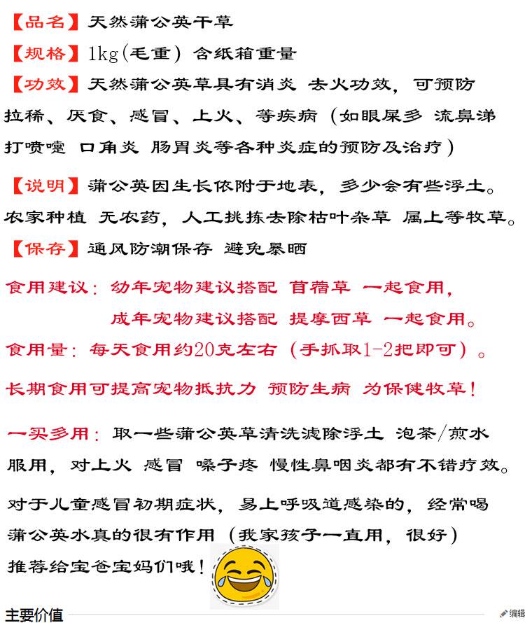 2021 2021 dandelion dried grass rabbit dragon cat guinea pig Dutch pig pet pasture to fire anti-inflammatory cold enteritis 1kg