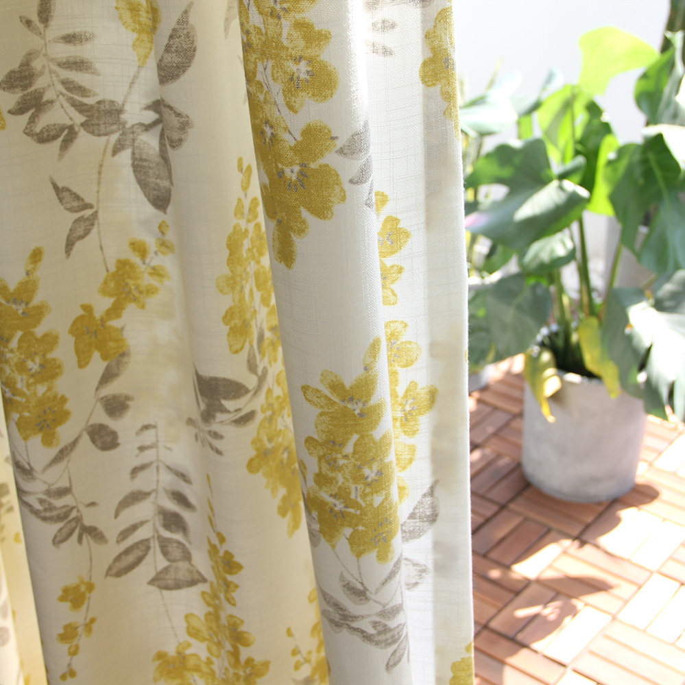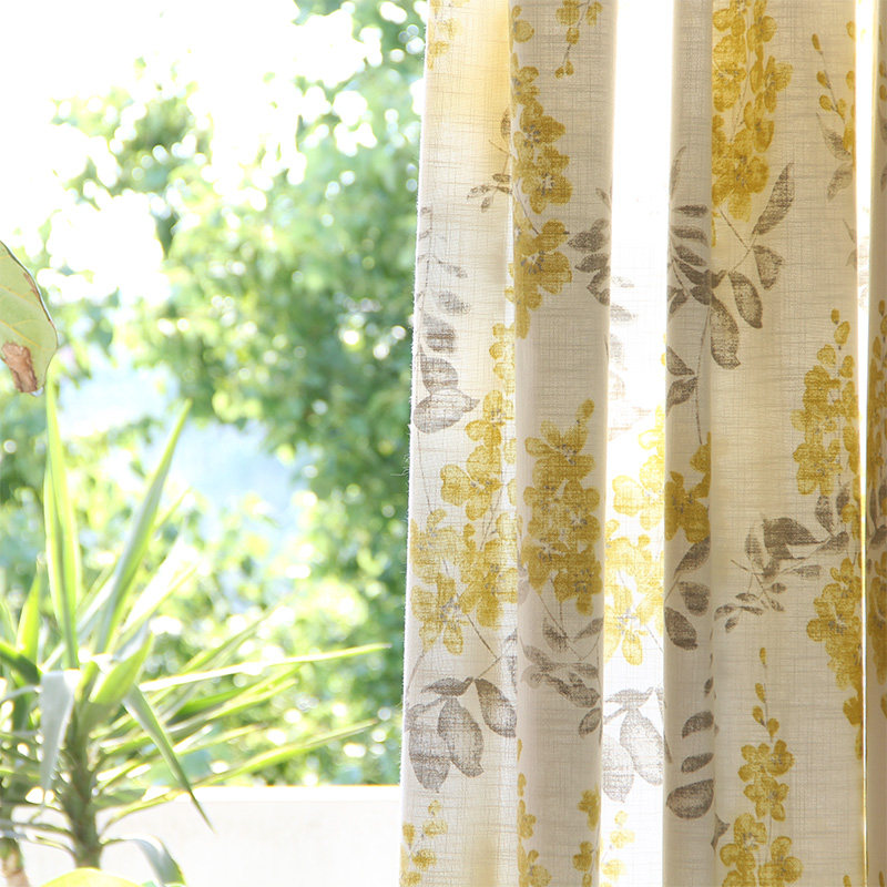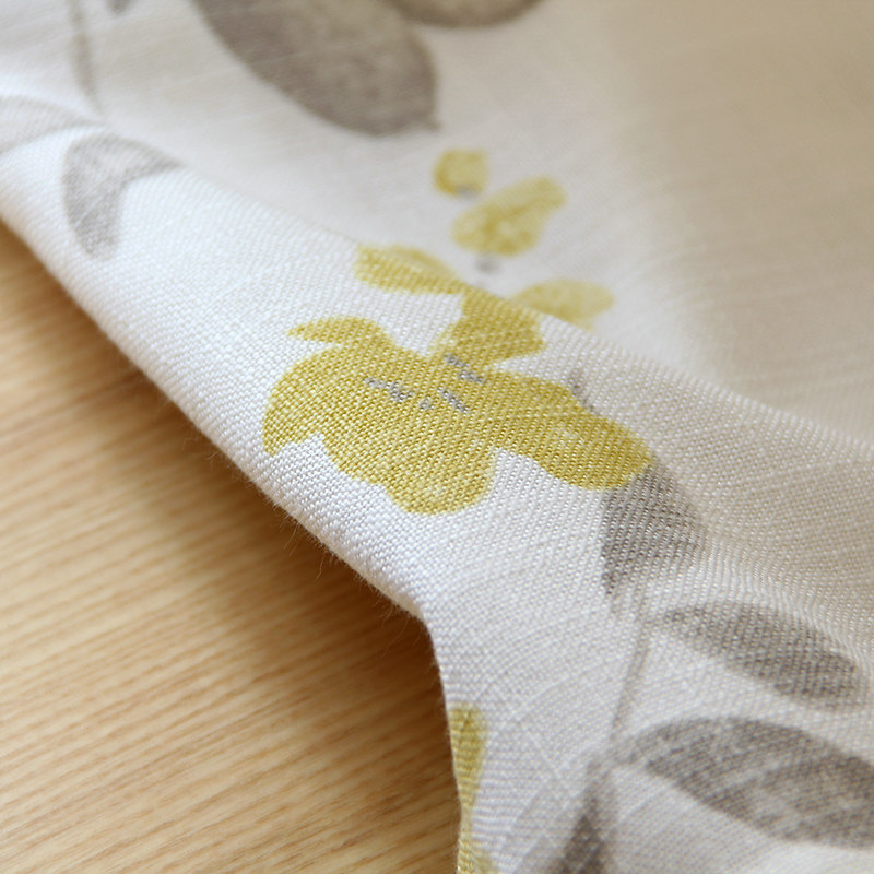 Yellow Grey Window Cord Fabric White Embroidered Leaf Yarn