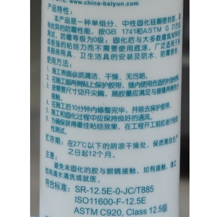 Guangzhou Baiyun SS608 neutral mildew-proof sealant glass glue waterproof and mildew-proof kitchen and bathroom 300ml