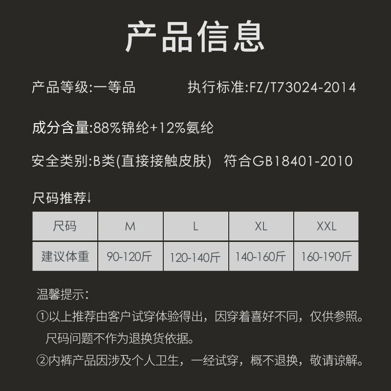 M (Recommended Weight 90-120 catty) L (Recommended Weight 120-140 catty) XL (Recommended Weight 140-160 catty) XXL (Recommended Weight 160 -