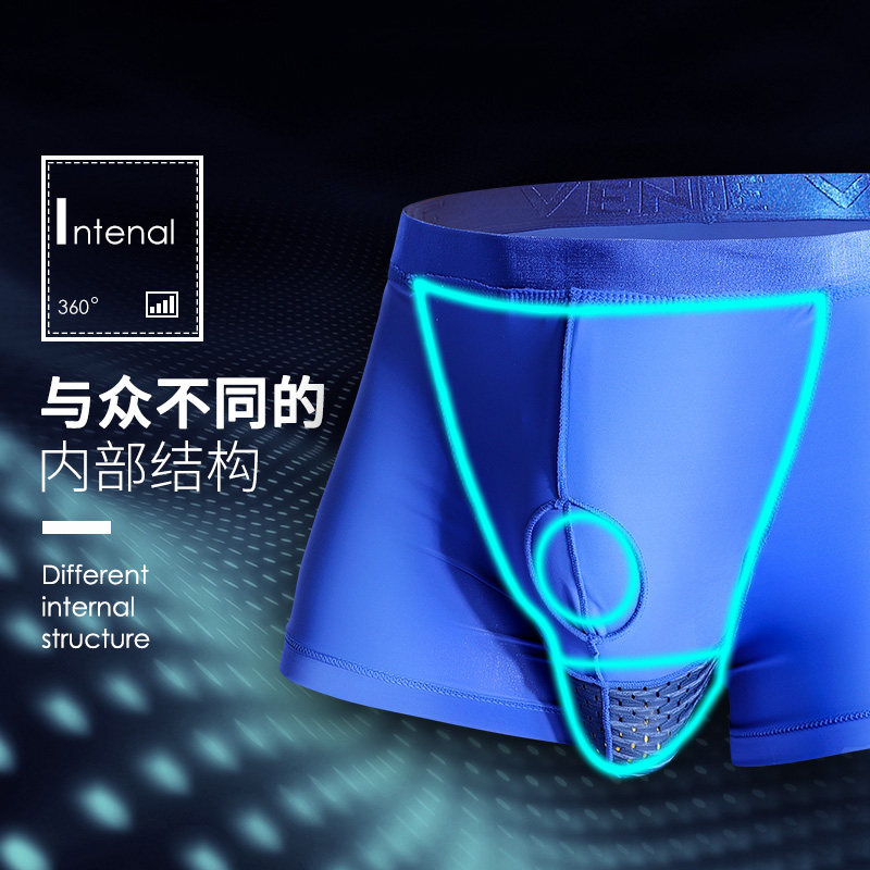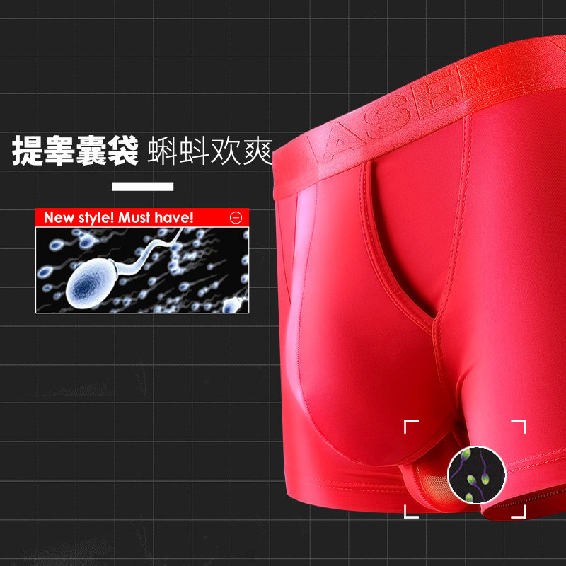 Ice Silk Gun Pop-up Separation Men's Underwear Flat Angle Sexy Spice Jj Sport Breathable Scrotum underpants head safety pants