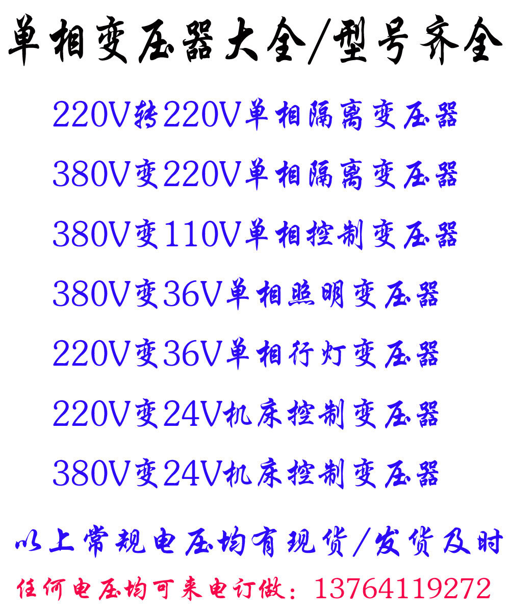 Single-phase control transformer 380V to 220V machine tool isolation transformer 220V to 220V transformer 1.5kw