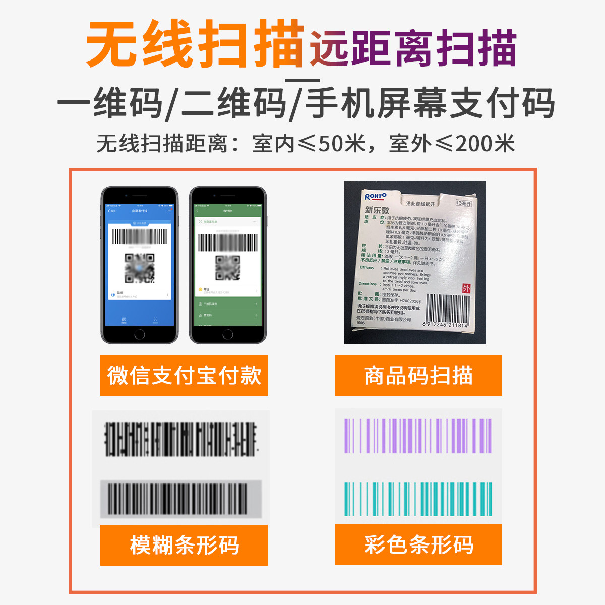 Wireless QR code scanning gun (black) 14950W