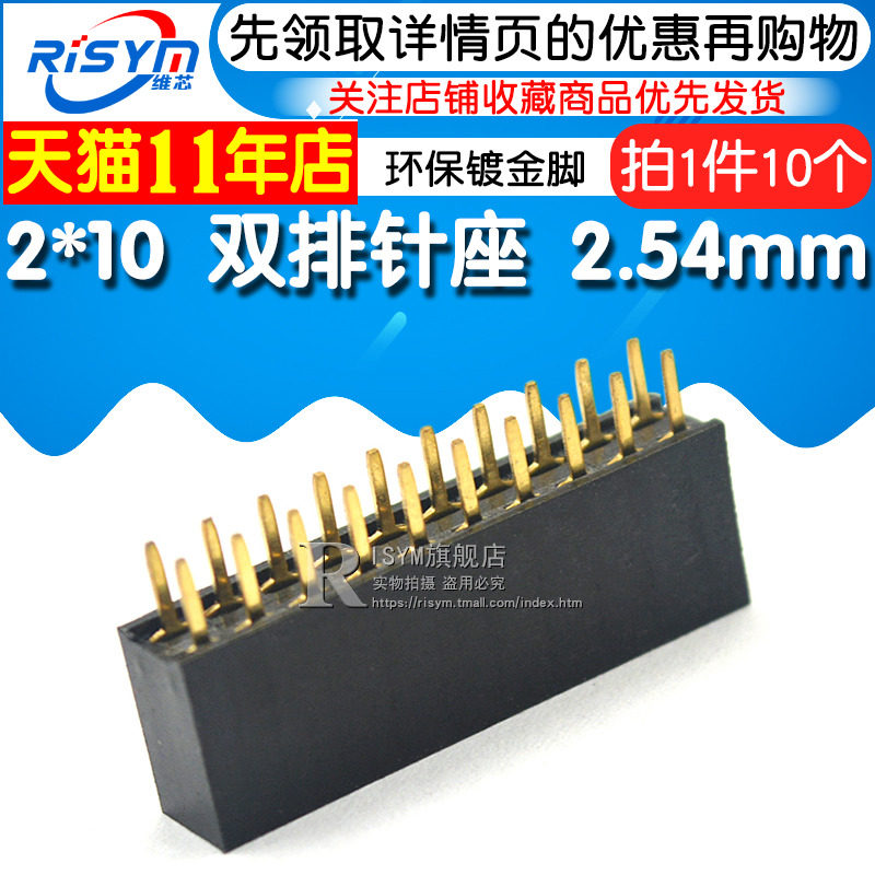 Risym 2*10 Double Row Female Double Row Header 2*10pin Socket 2.54mm Eco Gold Plated Pin 10 pcs