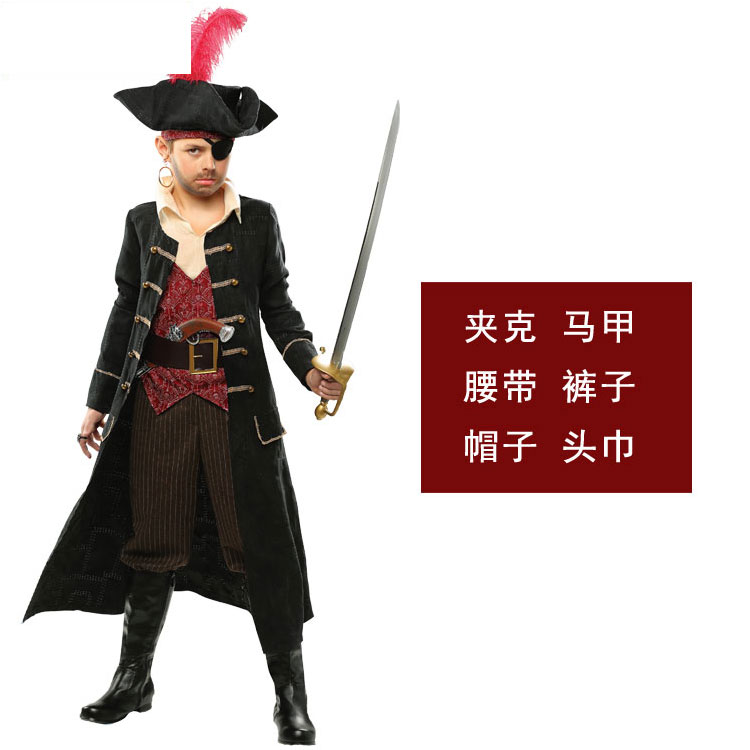 COS Halloween performance to serve children's luxury Caribbean pirate captain Flax Clothing Suit-Taobao