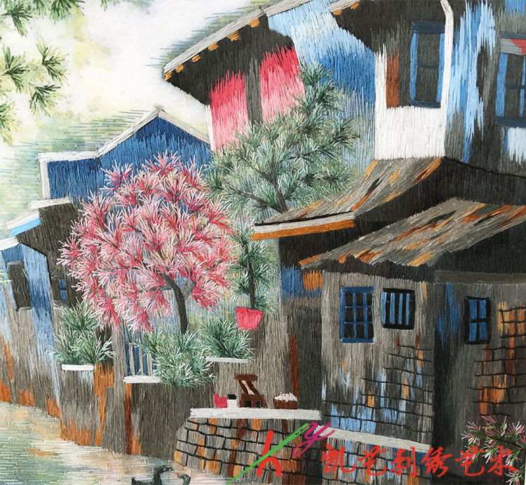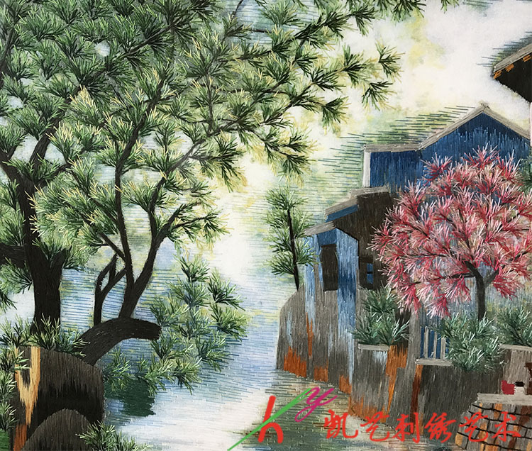 Suzhou Embroidery Finished Embroidery Boutique Jiangnan Water Village Handmade Embroidery Boutique Hanging Painting Living Room Bedroom Hanging Painting Suzhou Embroidery
