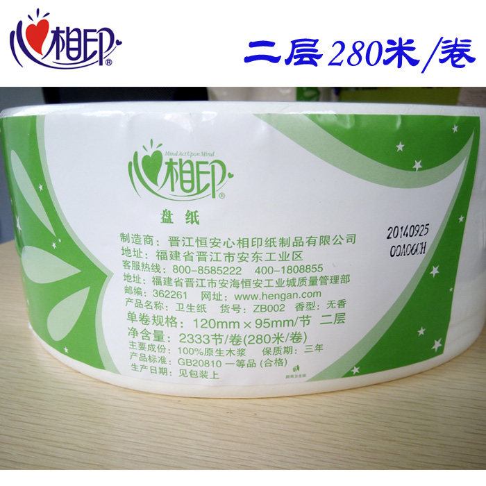 Heart phase print large stock paper ZB002 2nd floor 280 m large market paper drum toilet paper utility toilet paper Guangdong