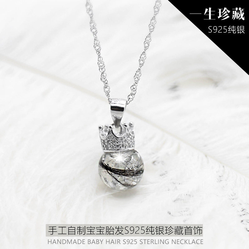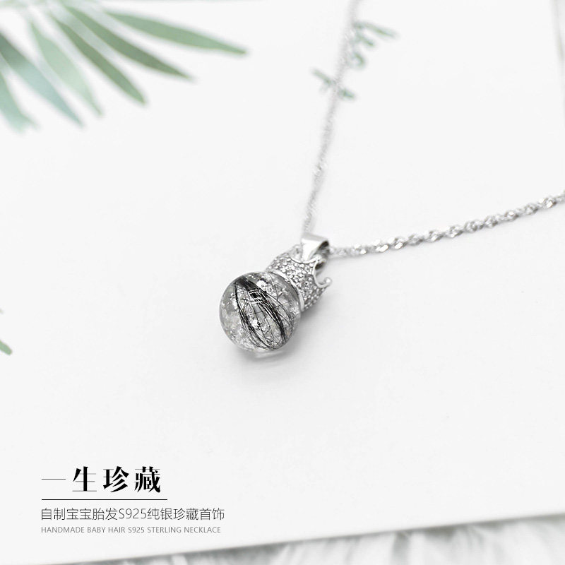 Newborn baby fetal hair souvenir diy homemade fetal hair crown pendant 925 sterling silver necklace one year old gift