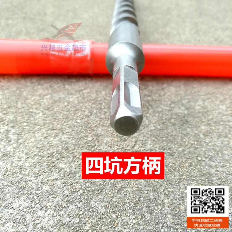 80 cm extended rotary hammer drill bit square handle four-pit rotary hammer drill impact drill head through the wall alloy drill bit length 800mm