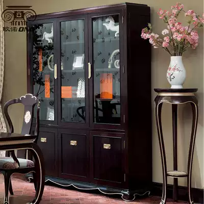 Ono Factory Direct Sales New Chinese Tiger retired solid wood book case study Elm carved gold computer desk bookcase
