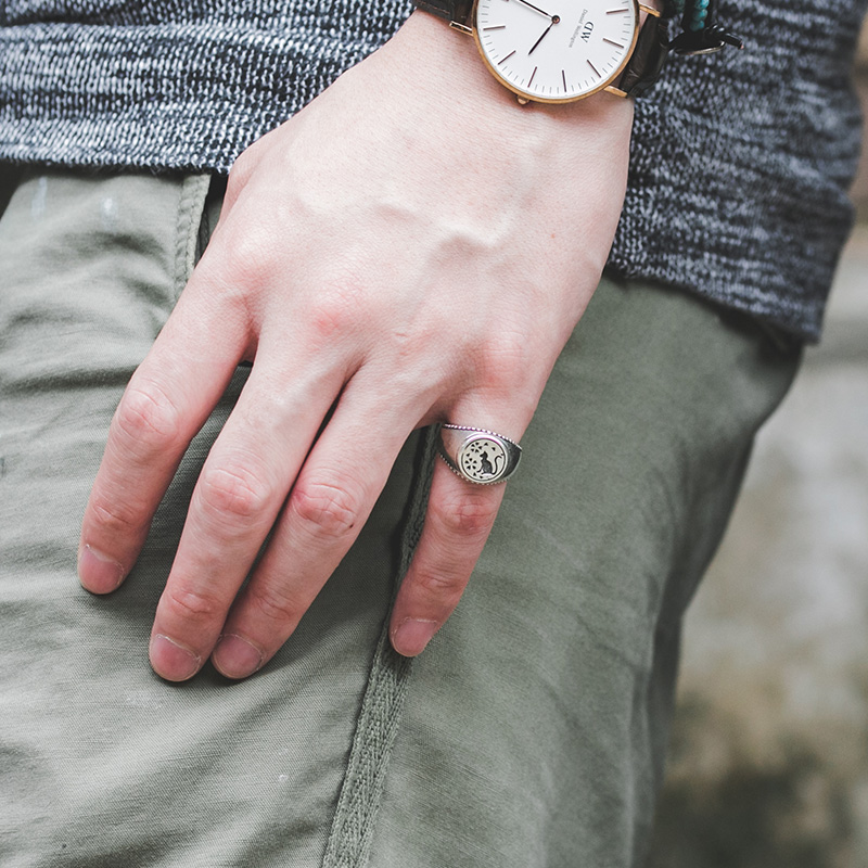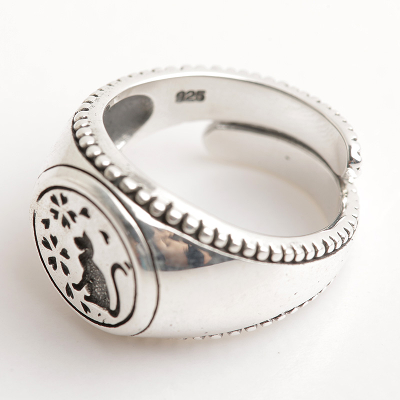ruibeila925 silver cherry cat cat open ring men and women vintage personality Thai silver middle finger index finger ring hipster