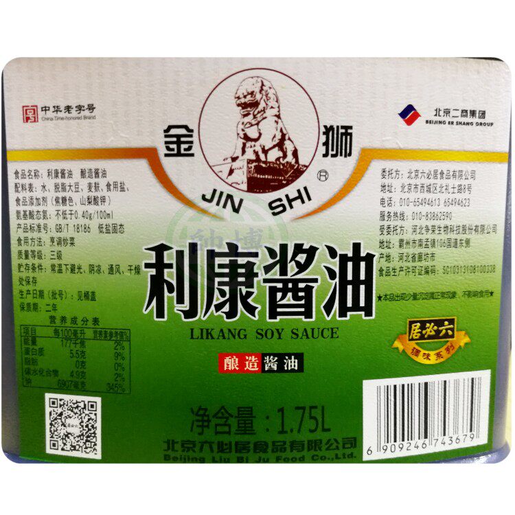Beijing Liubiju Golden Lion Likang Soy Sauce Brewed Soybean Sauce Stir-fried Vegetable Sauce Braised Colored Stuffing Cooking Packed in Boxes