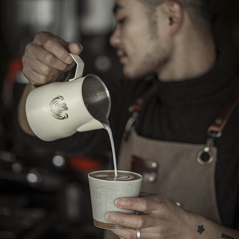 Milk drum coffee pulling vat Teflon milk foam cylinder cup 350 500ML stainless steel professional pulling cup