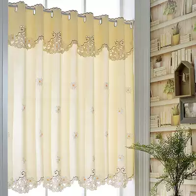 Korean semi-permeable coffee curtain Long and short door curtain Half curtain carved and embroidered hollow pastoral bay window curtain Kitchen partition door curtain