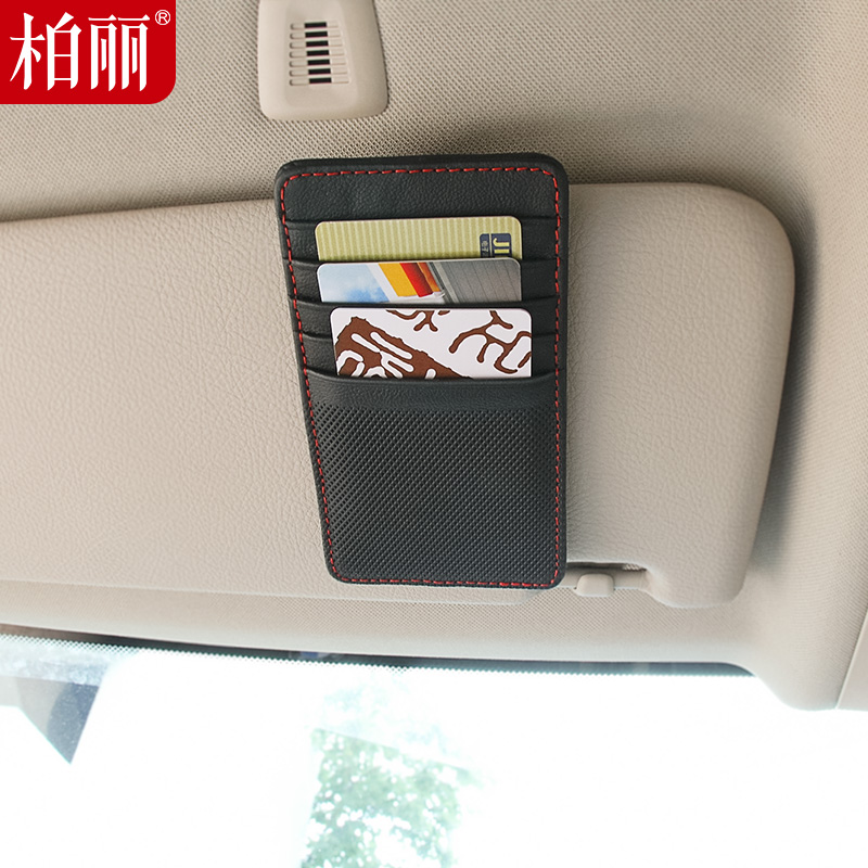 Car genuine leather card clamping car visor card clamping car bullskin card containing clip frame multifunctional universal