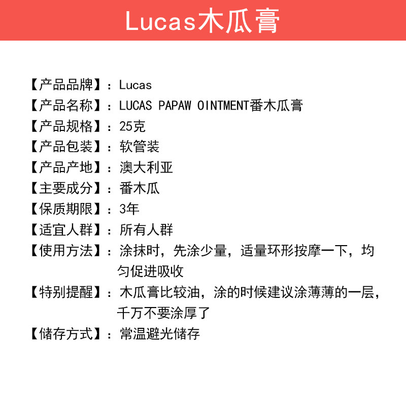 Australia Lucas papaw Papaya Cream 25g Universal Cream Moisturizing Lip and Hand Cream