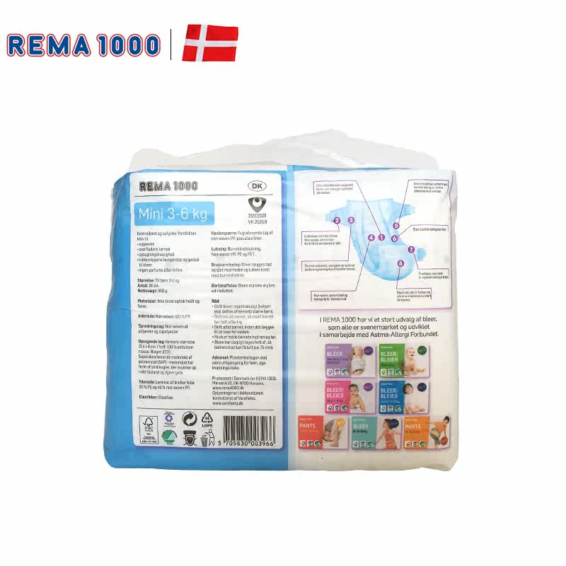 Denmark imported REMA1000 diapers for newborns and infants breathable diapers No 2 3-6kg
