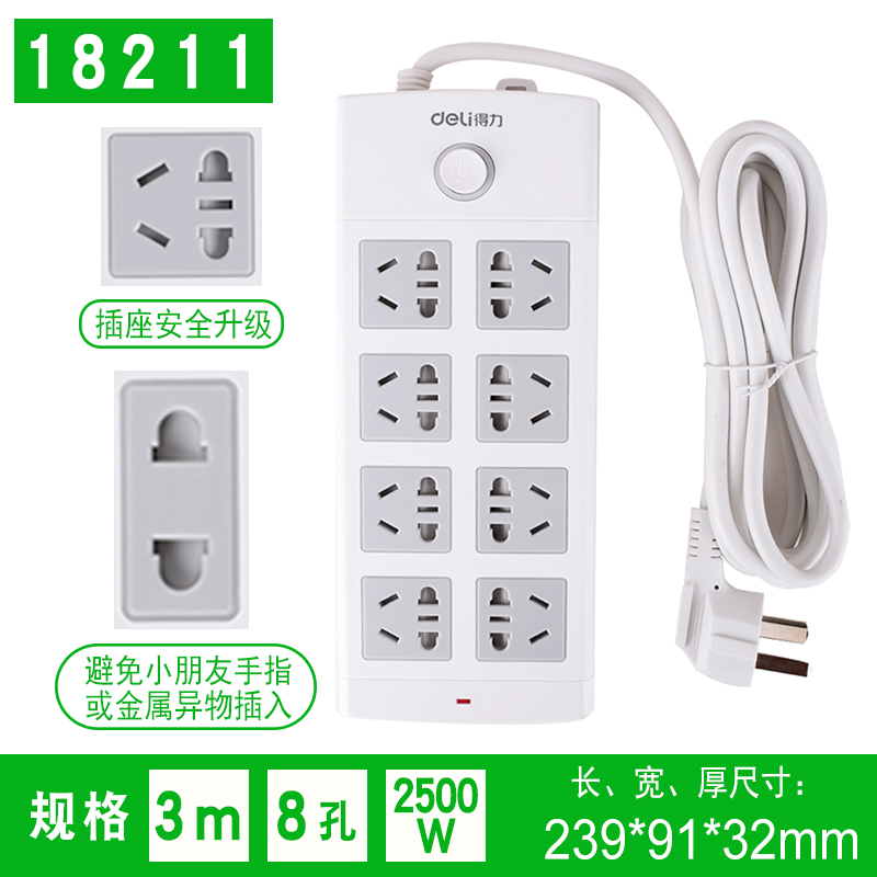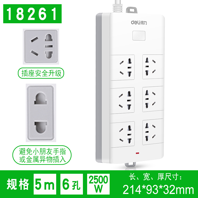 Deli new national standard socket plug extension line Household multi-function with wire extension line 3 5 meters wiring board row plug