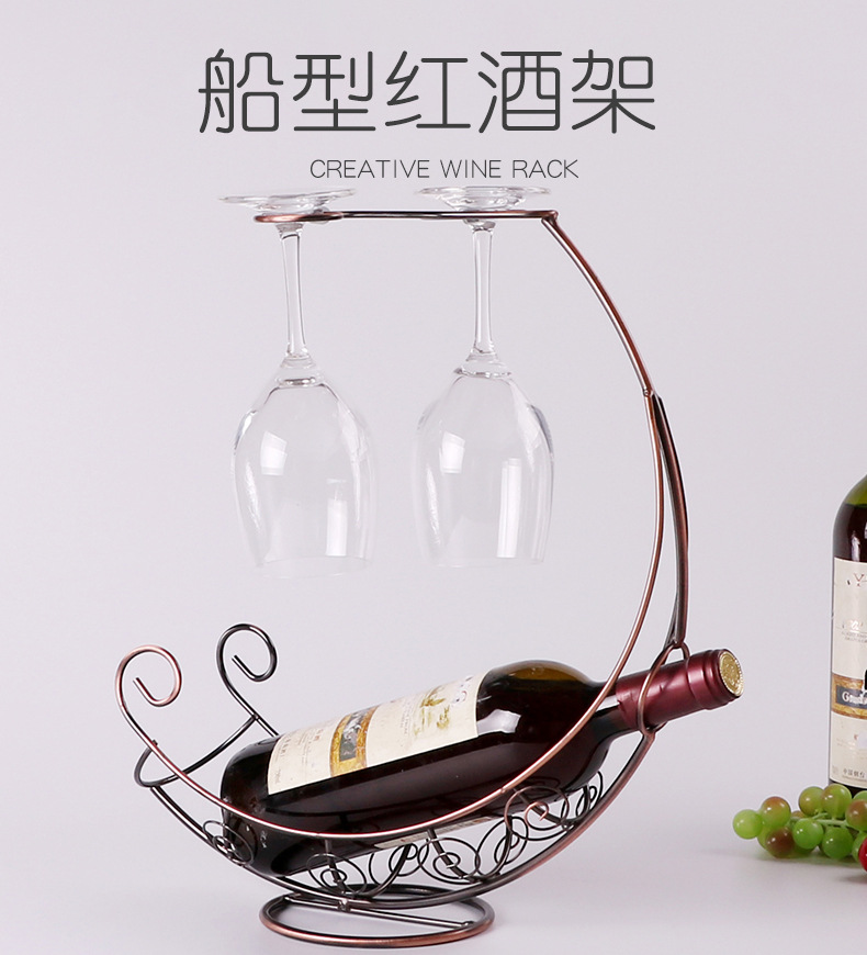 Creative Eu Style Wine Shelf Red Wine Shelf Red Wine Rack Fashion Wine Bottle Rack Sea Pirate Ship High Foot Cup Rack Swing