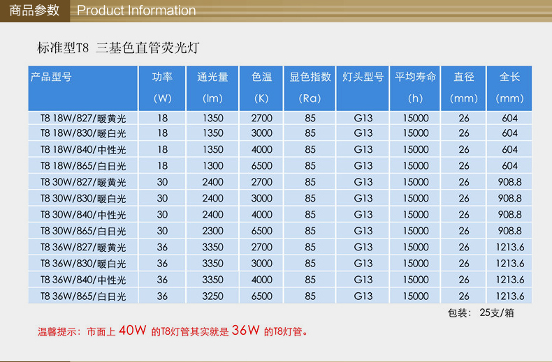 Philips T8 tricolor lamp fluorescent tube standard straight tube grille fluorescent tube TLD18W30W36W58