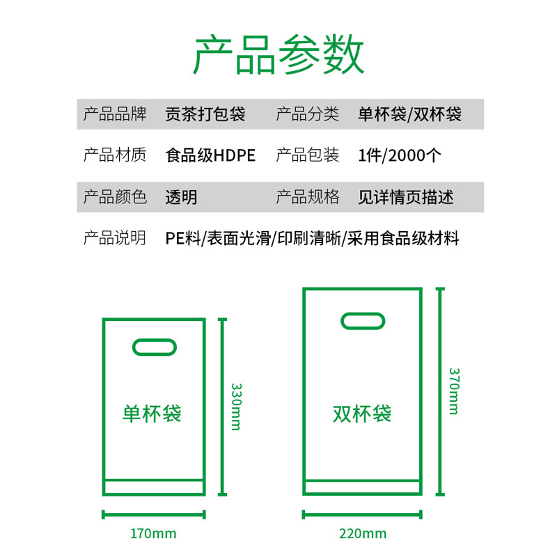 Tribute Tea Thickening Packing Bag Disposable Tribute Tea Single Cup Bag double-cup bag Milk Tea Juice Fruit Tea Packing Bag