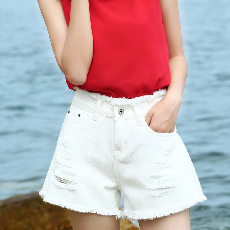 White shorts female summer high waist Korean edition loose student with lean hair - broken jean shorts female hot pants tide