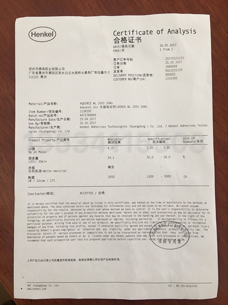 Henkel WL2093 plying glue assembly 20kg environment-friendly quick-drying back-shaped solid wood furniture, etc.
