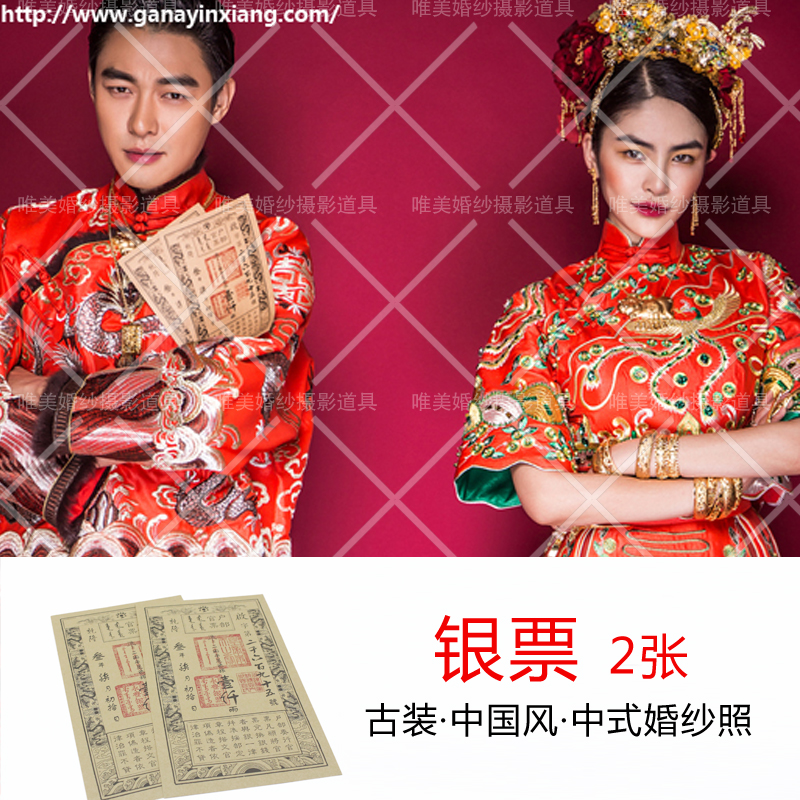 Ancient Clothing Props Silver ticket film and TV photo performance photo imitation ancient Qing Dynasty Qianlong coin ancient silver ticket items two pieces
